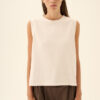 TAINA LIGHT GMTD JERSEY er en alsidig og stilren ærmeløs top, der løfter enhver garderobe. Designet med fokus på kvalitet og komfort, gør den sig perfekt til både hverdagsbrug og mere formelle lejligheder. Den runde halsudskæring og afslappede pasform giver et tidløst udtryk, der er nemt at kombinere med alt fra jeans til feminine nederdele. En klassisk musthave style, der aldrig går af mode.