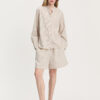 Bibs Shirt Epure er en feminin og elegant skjorte designet uden krave, fremstillet i blød, ufarvet økologisk bomuld. Det lette materiale er vævet med kontrastfarvede striber, som skaber et raffineret og moderne udtryk. Skjorten har en regulær pasform, delikate perlemorsknapper, dekorative rynkedetaljer ved bærestykket og voluminøse ærmer, der tilsammen giver et eksklusivt og luftigt fald.