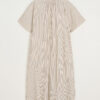 Cille Dress Epure er en elegant, lang kjole fremstillet i blød, ufarvet økologisk bomuld. Den er vævet med kontrastfarvede striber, som giver et raffineret og let grafisk udtryk. Kjolen har et lige snit med sænkede skuldre, fine perlemorsknapper og praktiske sidelommer. Den runde hals åbner op for en unik rynkedetalje, der tilfører volumen og en smuk, afrundet silhuet. En stilren og komfortabel kjole, der kan bruges både til hverdag og finere anledninger.