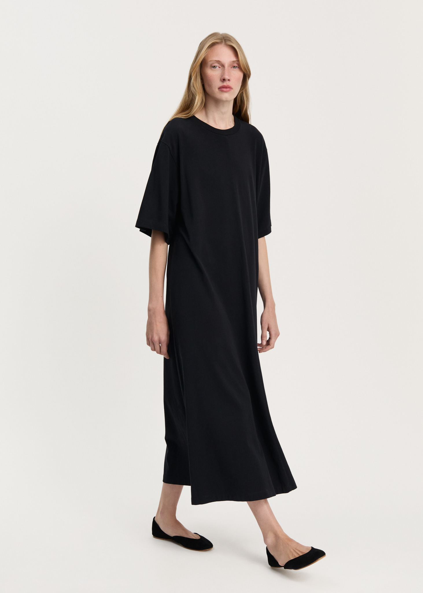 Gita Circular Dress er en elegant og moderne T‑shirtkjole skabt i en kraftig og blød jersey af både økologisk og genanvendt bomuld. Den lange silhuet er designet i en afslappet pasform med let A‑form, der giver et smukt skulpturelt fald. Høje slidser i siderne, strukturerede sømme og et broderet Aiayu‑logo bagpå fuldender udtrykket og giver kjolen en eksklusiv, minimalistisk finish. En komfortabel og tidløs style med cirkulært aftryk.