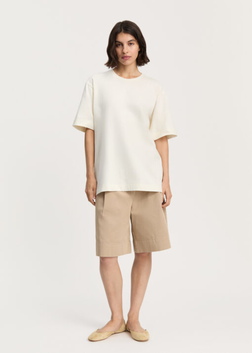 Lui Circular Tee er en klassisk og tidsløs T‑shirt fremstillet i en blød, kraftig jersey af både økologisk og genanvendt bomuld. T‑shirten er inspireret af traditionelle menswear‑tees og har en let oversized, regulær pasform, der giver et afslappet og moderne udtryk. Med rund hals, korte ærmer og et diskret broderet Aiayu‑logo bagpå er den en alsidig og bæredygtig basic til enhver garderobe.