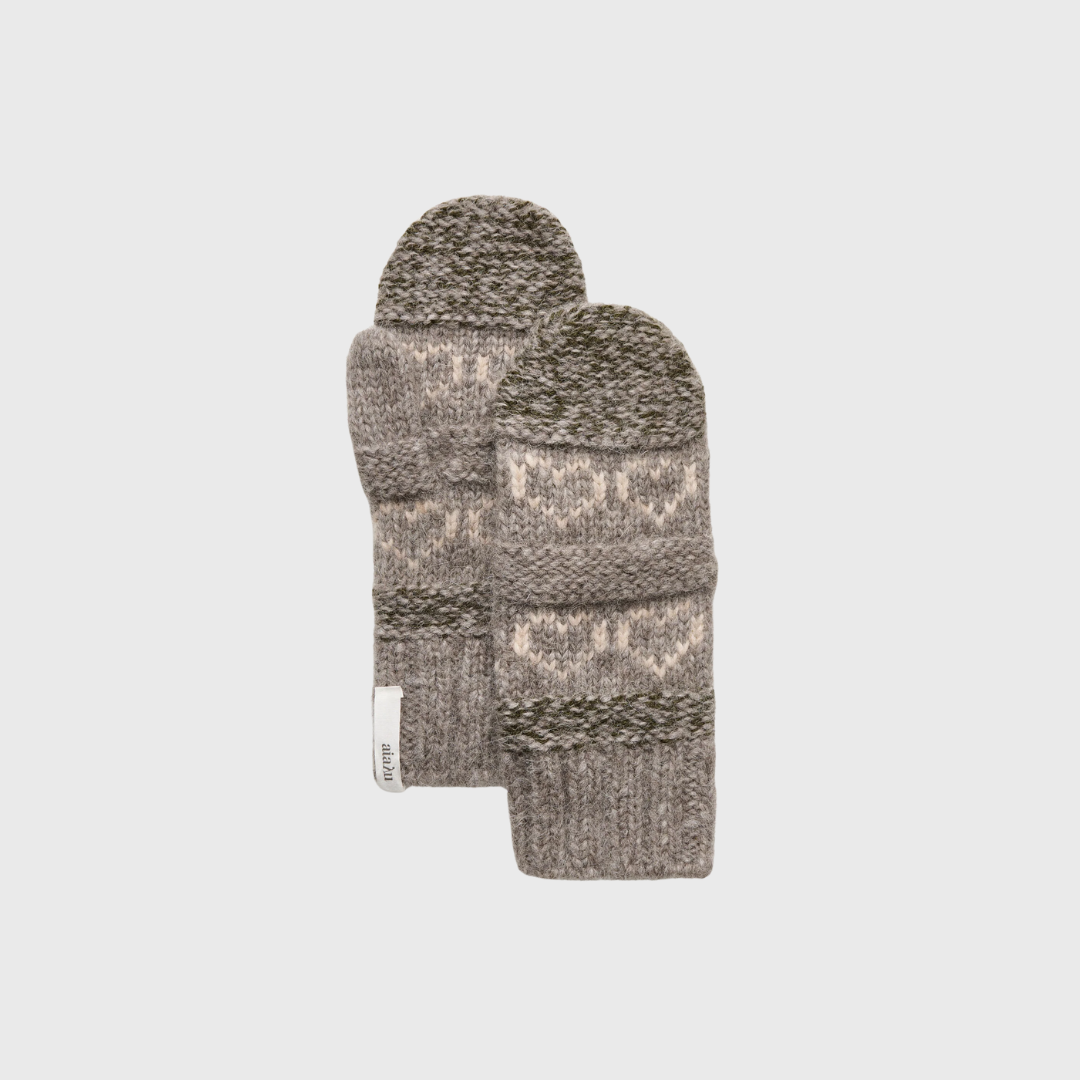 Forkæl dine hænder med Mei Mix Bark – et par luksuriøse, håndstrikkede luffer i ufarvet, meleret lamauld med en blød og fluffy tekstur. Det fine hjertestrik giver et feminint og charmerende udtryk, mens den naturlige uldblanding sikrer varme og komfort i vinterkulden.