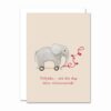 - Motiv: Elefant med fødselsdagskort og tekst