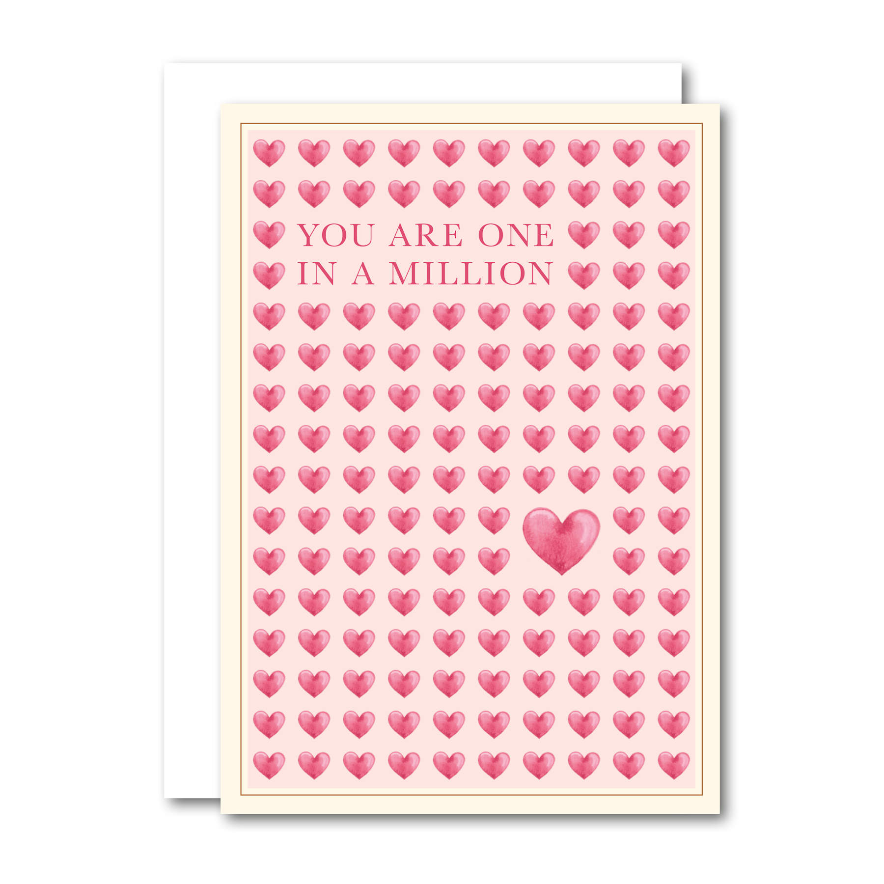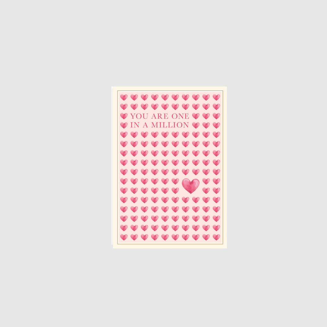 “One In A Million” er et smukt, moderne og personligt lille kort designet af Annemette Voss Fridthjof. Med et elegant akvarelmotiv kombineret med grafisk design er kortet perfekt som både kærlighedskort, lykønskningskort og som en særlig hilsen til én, der betyder lidt ekstra. Leveres i A7‑format med kuvert.