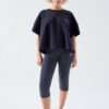 Den korte, boxy længde kombineret med bådudskæringen og de lave ærmegab skaber et moderne udtryk, som er perfekt til både leggings, jeans og wide‑leg pants.