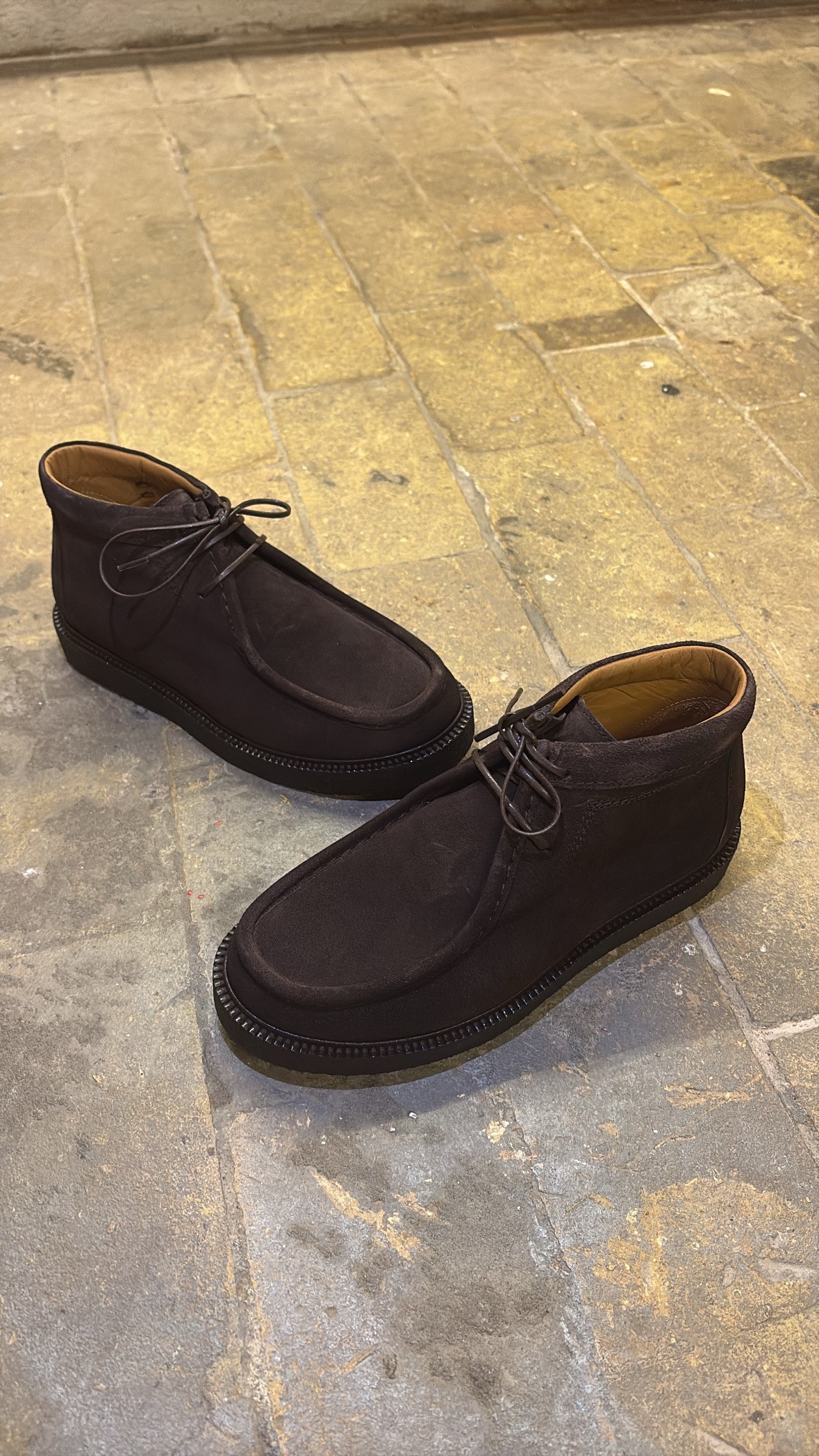 En klassisk og komfortabel snøresko fra Angulus, her i smukt brun ruskind med dekorativ rand. Skoen har en rummelig pasform og er designet med rundet snude, bomuldssnøre og polstret krave for ekstra komfort. Den fleksible rågummisål giver et blødt og naturligt afsæt – perfekt til både hverdag og arbejde.