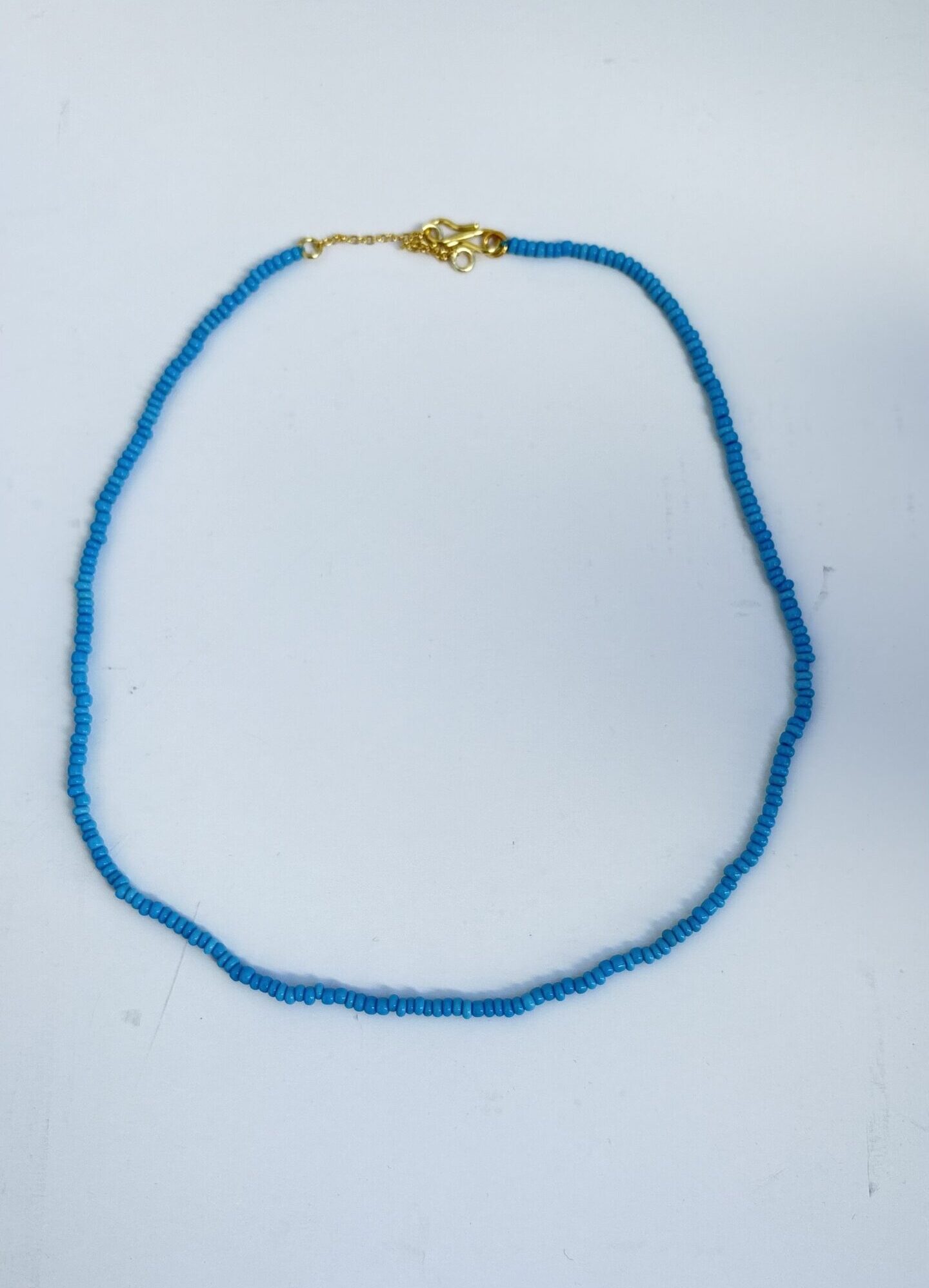 Tilføj et strejf af farve og personlighed til dit look med denne håndlavede turkis perlehalskæde fra Annavii. Halskæden er enkel og stilfuld – designet i ensfarvede perler og afsluttet med en elegant forgyldt s-lås samt justerbar forlængerkæde.