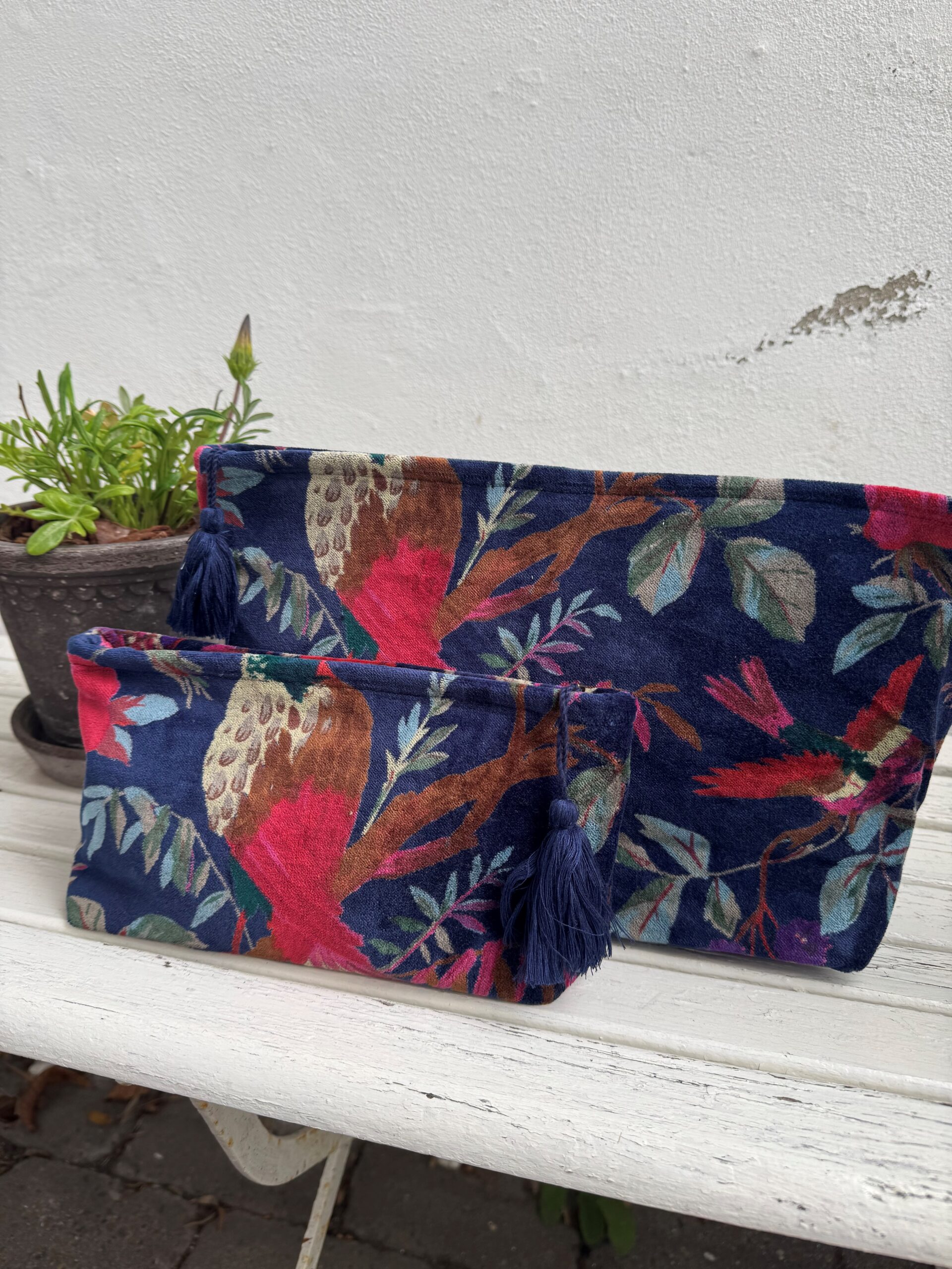 Smuk og farverig toilettaske fra Annavii – perfekt til opbevaring af smykker, makeup eller som rejsetaske. Tasken er lavet i blød velour med inspiration fra Indiens farver, mønstre og hverdagsmagi. Hver taske har et unikt indisk mønster og fås i flere smukke farver, der bringer varme og personlighed til din hverdag.