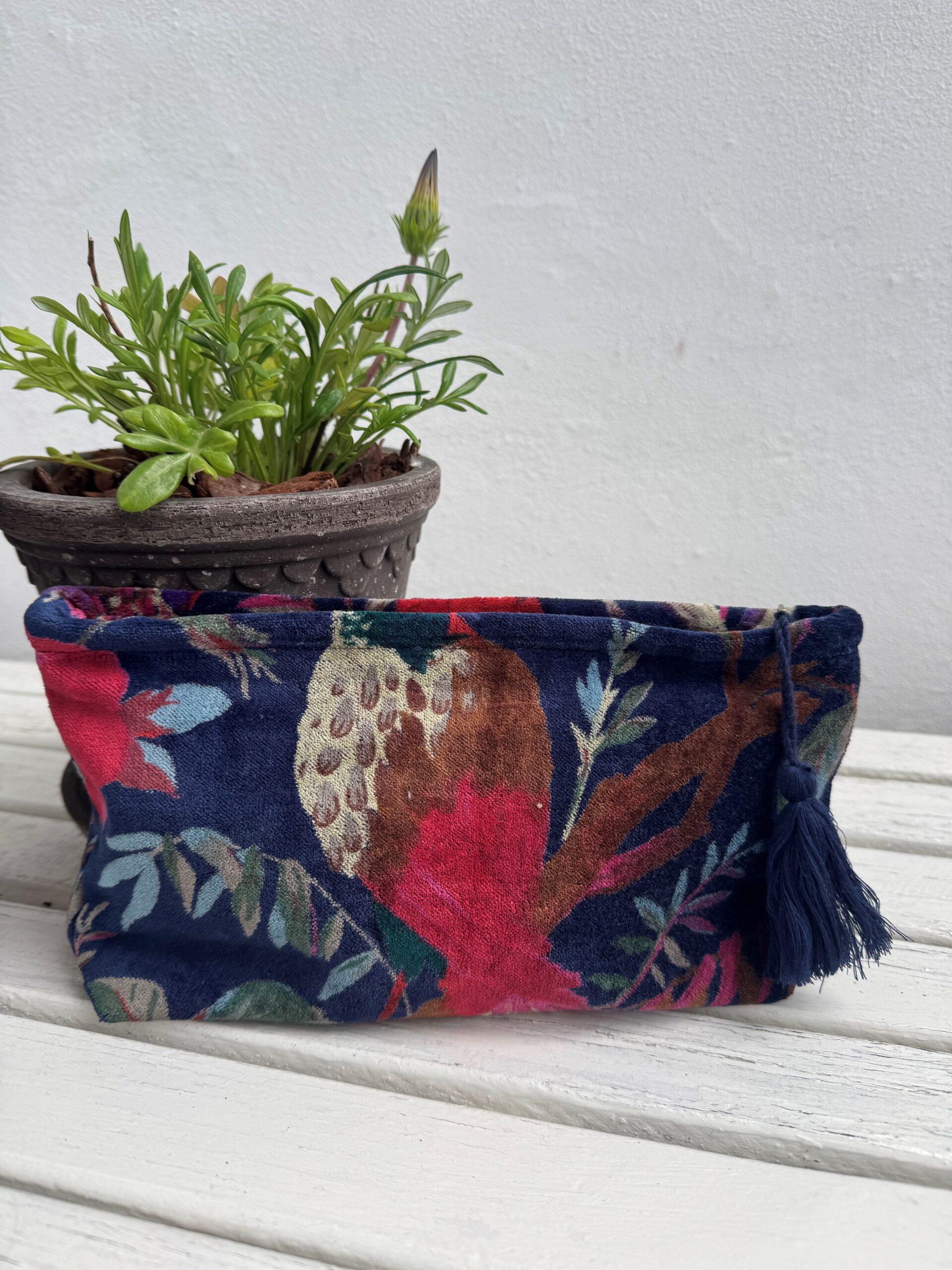 Smuk og farverig toilettaske fra Annavii – perfekt til opbevaring af smykker, makeup eller som rejsetaske. Tasken er lavet i blød velour med inspiration fra Indiens farver, mønstre og hverdagsmagi. Hver taske har et unikt indisk mønster og fås i flere smukke farver, der bringer varme og personlighed til din hverdag.