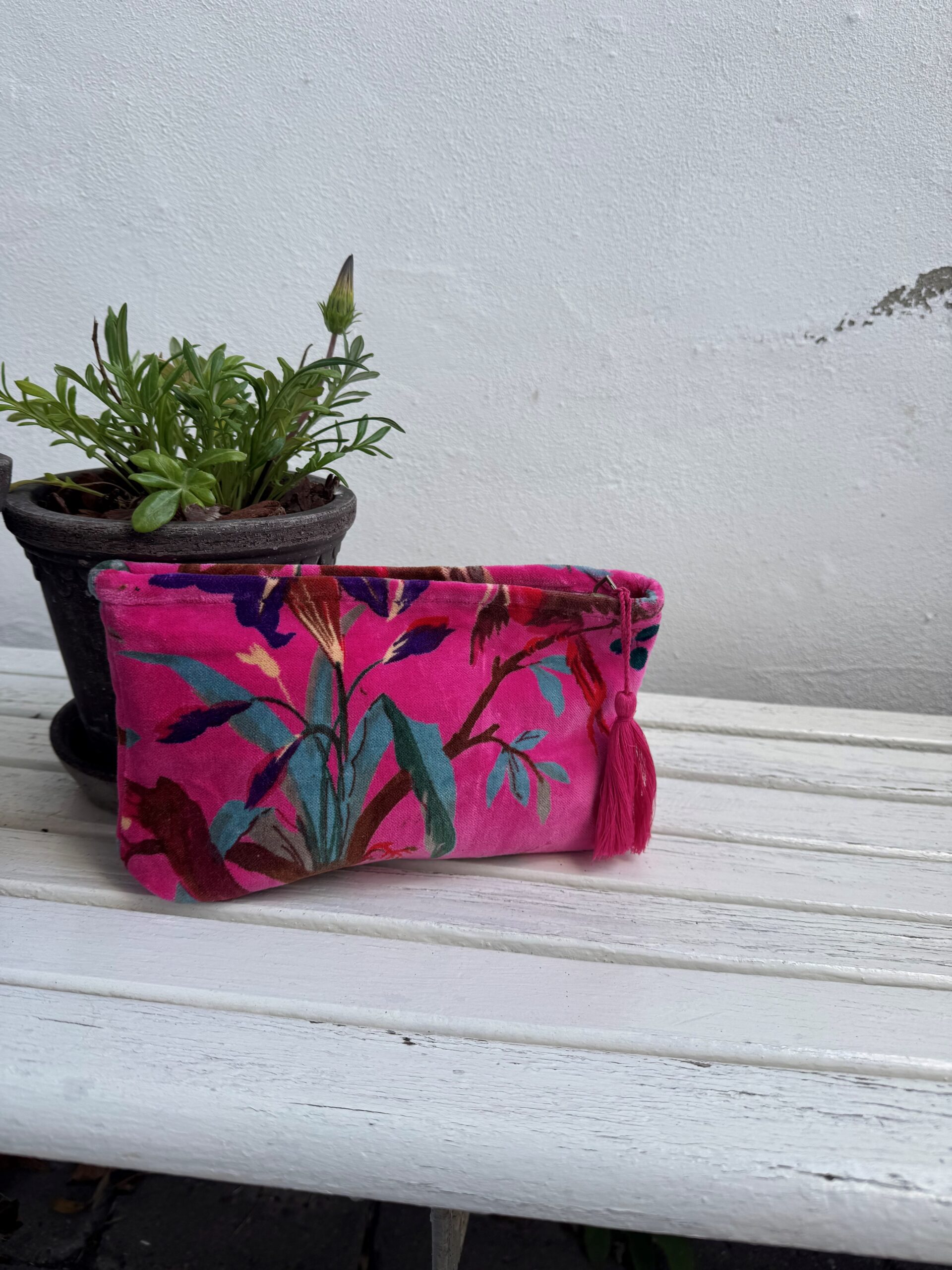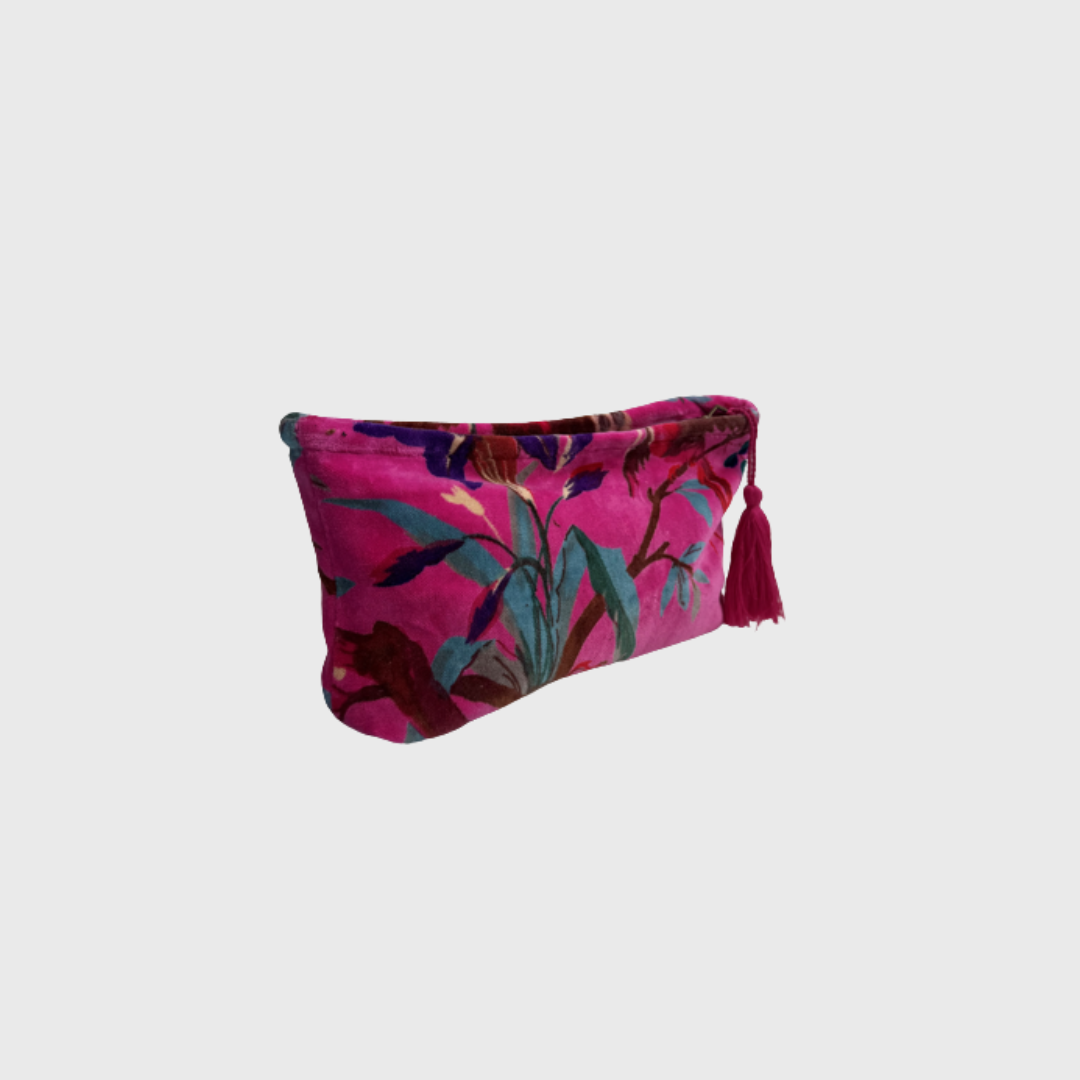 Smuk og farverig toilettaske fra Annavii – perfekt til opbevaring af smykker, makeup eller som rejsetaske. Tasken er lavet i blød velour med inspiration fra Indiens farver, mønstre og hverdagsmagi. Hver taske har et unikt indisk mønster og fås i flere smukke farver, der bringer varme og personlighed til din hverdag.