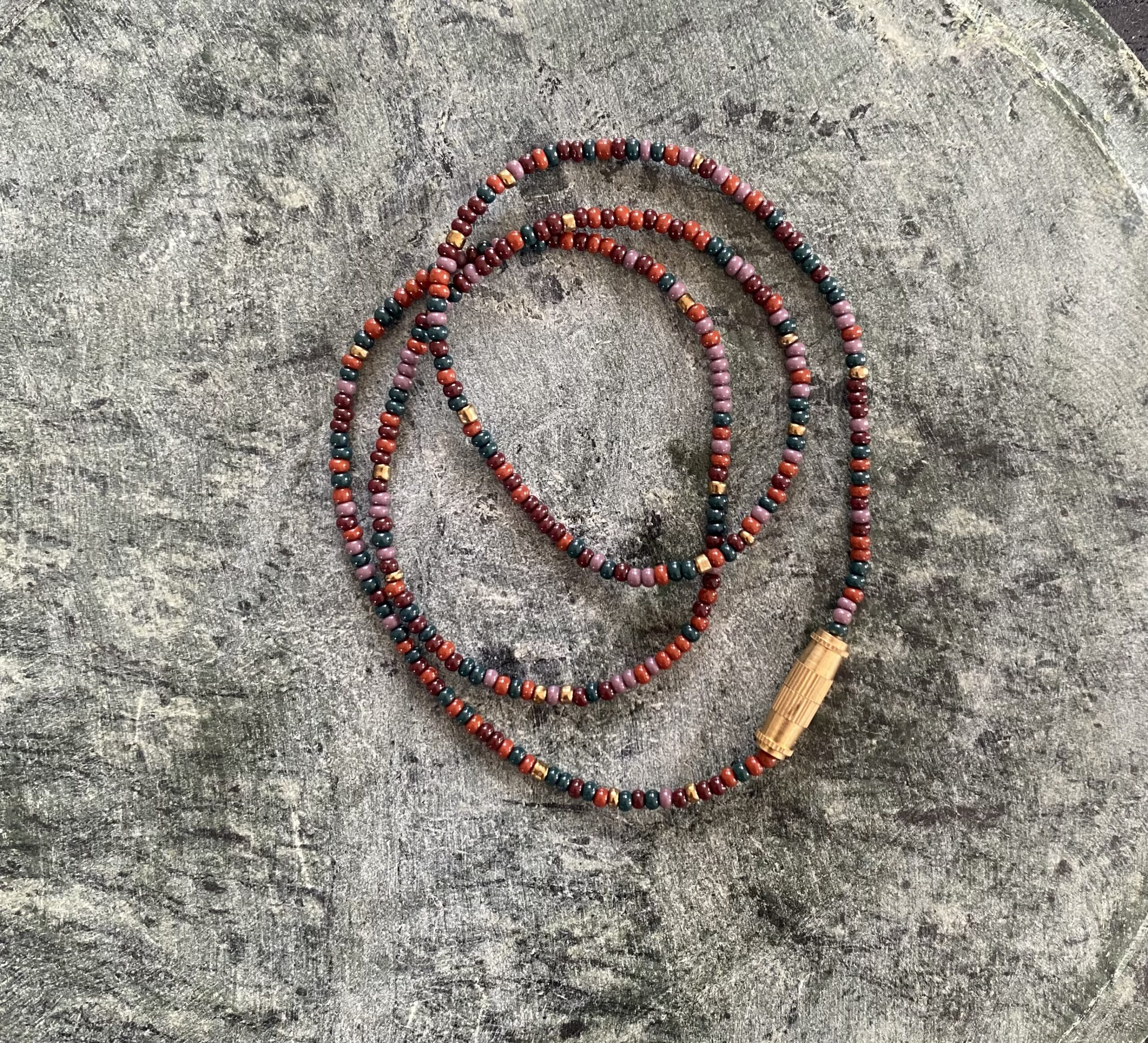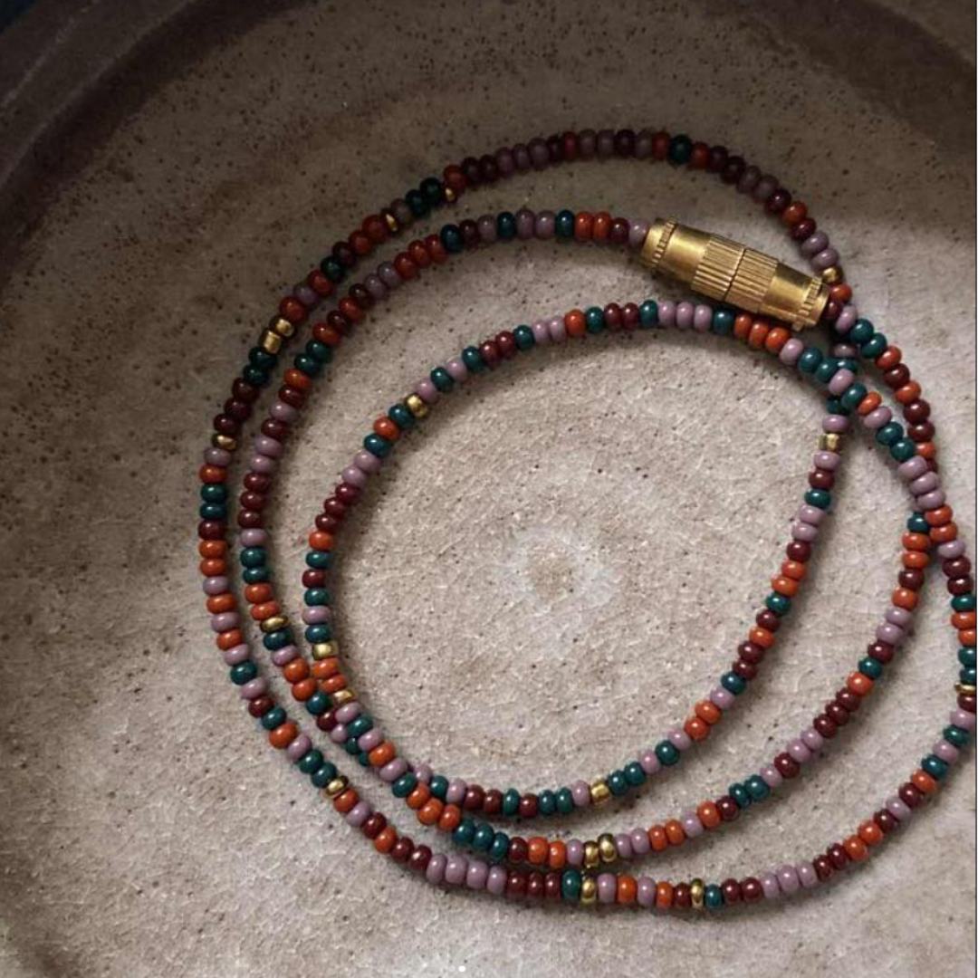 Tilføj et strejf af farve og personlighed til dit look med denne håndlavede multifarvet perlehalskæde fra Annavii. Halskæden er enkel og stilfuld – designet i multifarvet perler og afsluttet med en med messing skruelås,