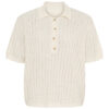 Strikken har et sofistikeret polo‑design med krave og let struktur, der gør den perfekt som både hverdagsstyle og som et dressy alternativ til en klassisk T‑shirt eller bluse.