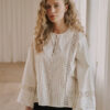 Modellen er designet med beklædte stofknapper, fine lægsyninger (pleats) og delikate crochet‑detaljer, som tilsammen skaber et elegant og eksklusivt udtryk. De smukke ballonærmer med elastiske manchetter tilfører skjorten et moderne og feminint touch, mens den lette struktur i bomulden giver et naturligt og luftigt fald.