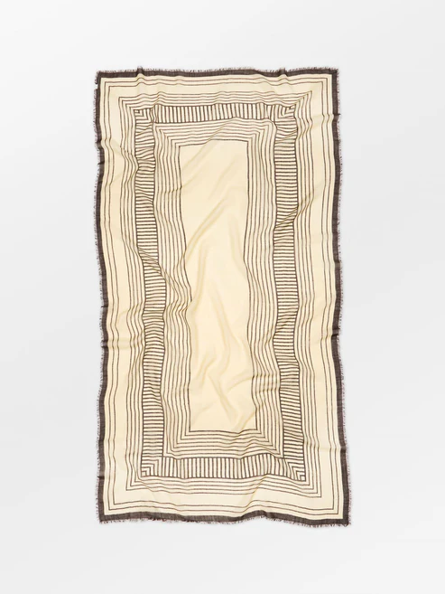 Anniea Woo Scarf i farven Chocolate Brown er et elegant og stilrent tørklæde fra Becksöndergaard. Det luksuriøse uldmateriale gør tørklædet både varmt, blødt og komfortabelt, samtidig med at det grafiske mønster giver et moderne og sofistikeret udtryk. Den generøse størrelse på 100 × 200 cm gør det nemt at style tørklædet på mange måder – uanset om du ønsker et casual look eller et mere poleret outfit.