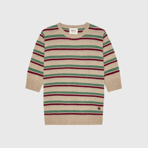 Beta Studios – Mini Stripes Lady Sleeve – Sand Melange/Pomegranate/Fir Green