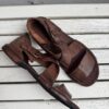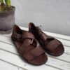 Sandalen er lavet på en komfortabel skindsål, der er betrukket med sort gummi for fleksibilitet og ekstra greb. Den mørkebrune farve er dyb, varm og tidløs – perfekt til både hverdag og mere klædte sommerlooks.