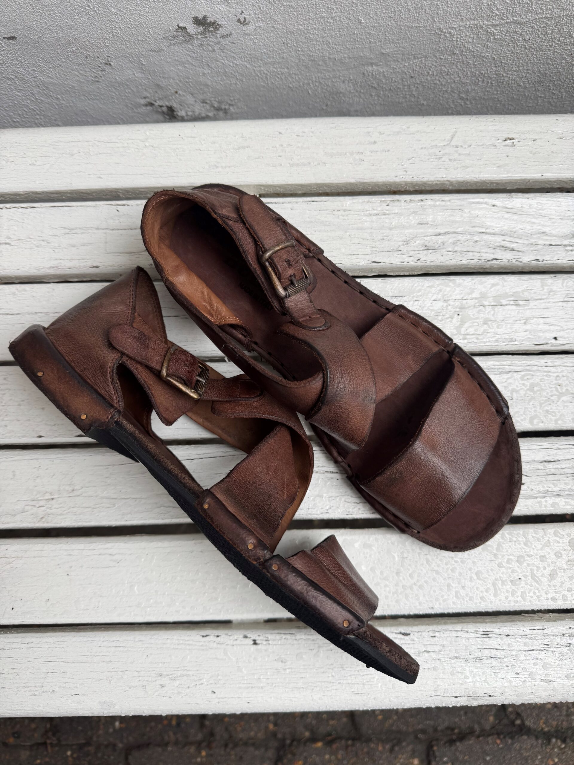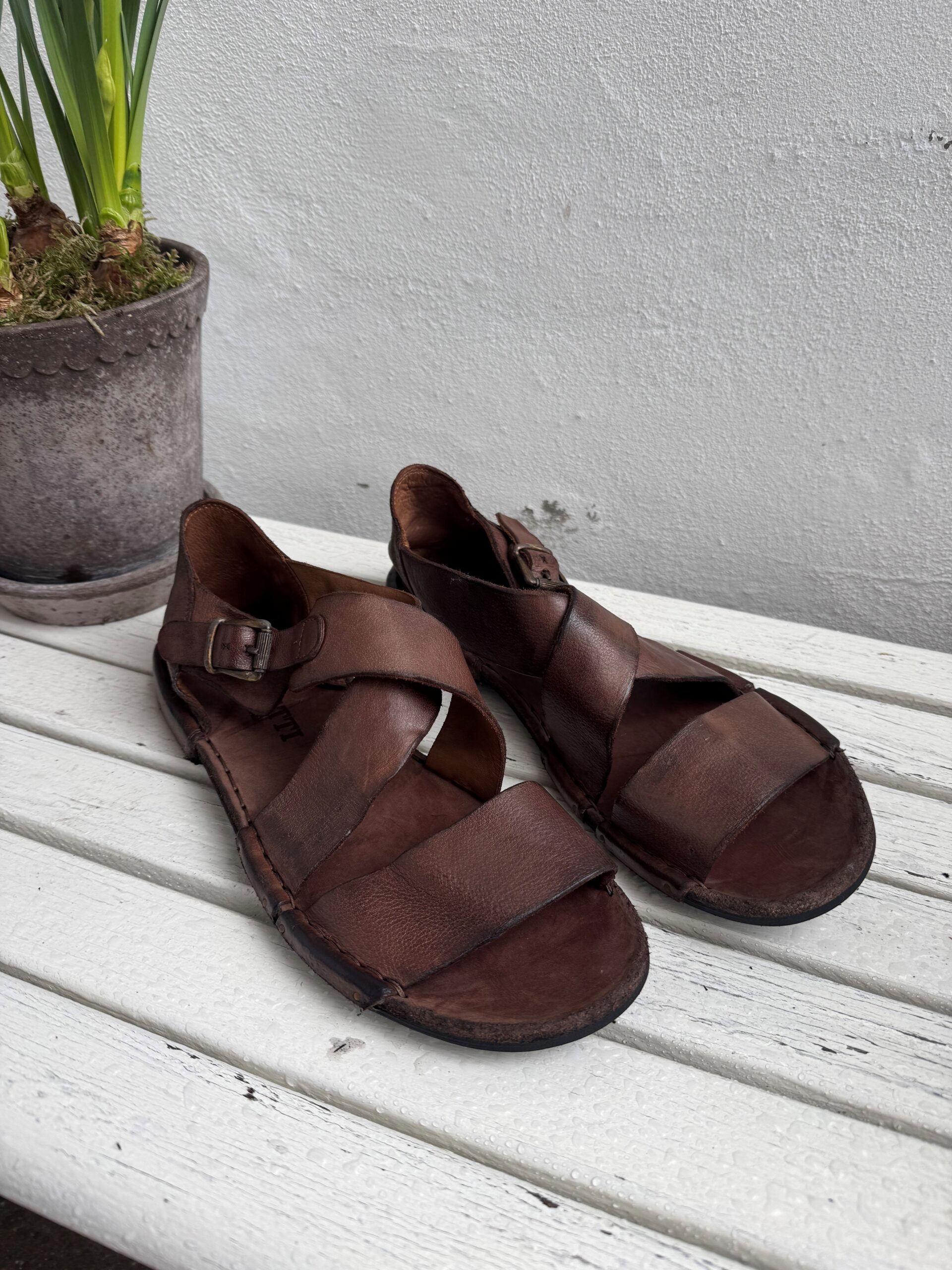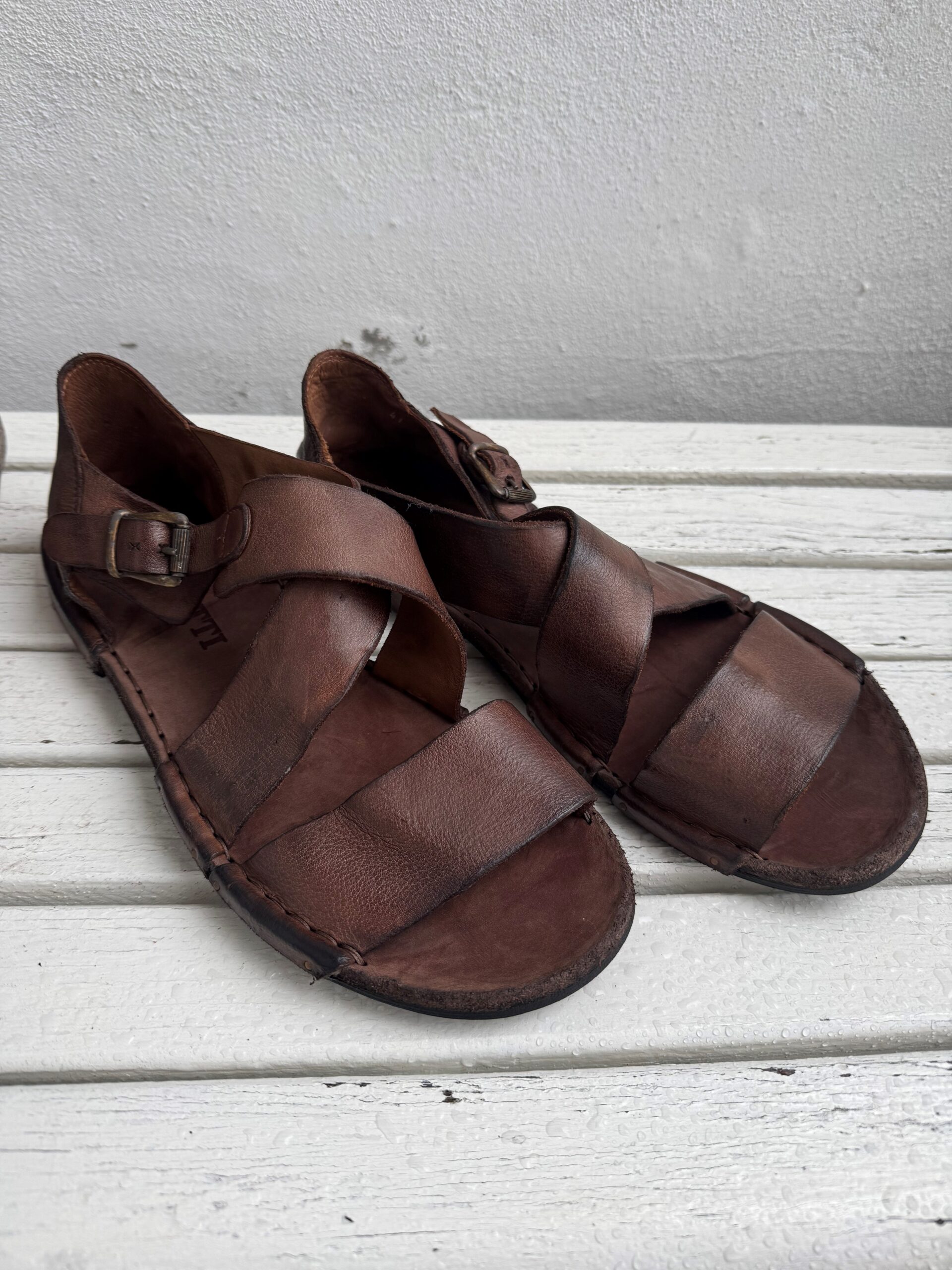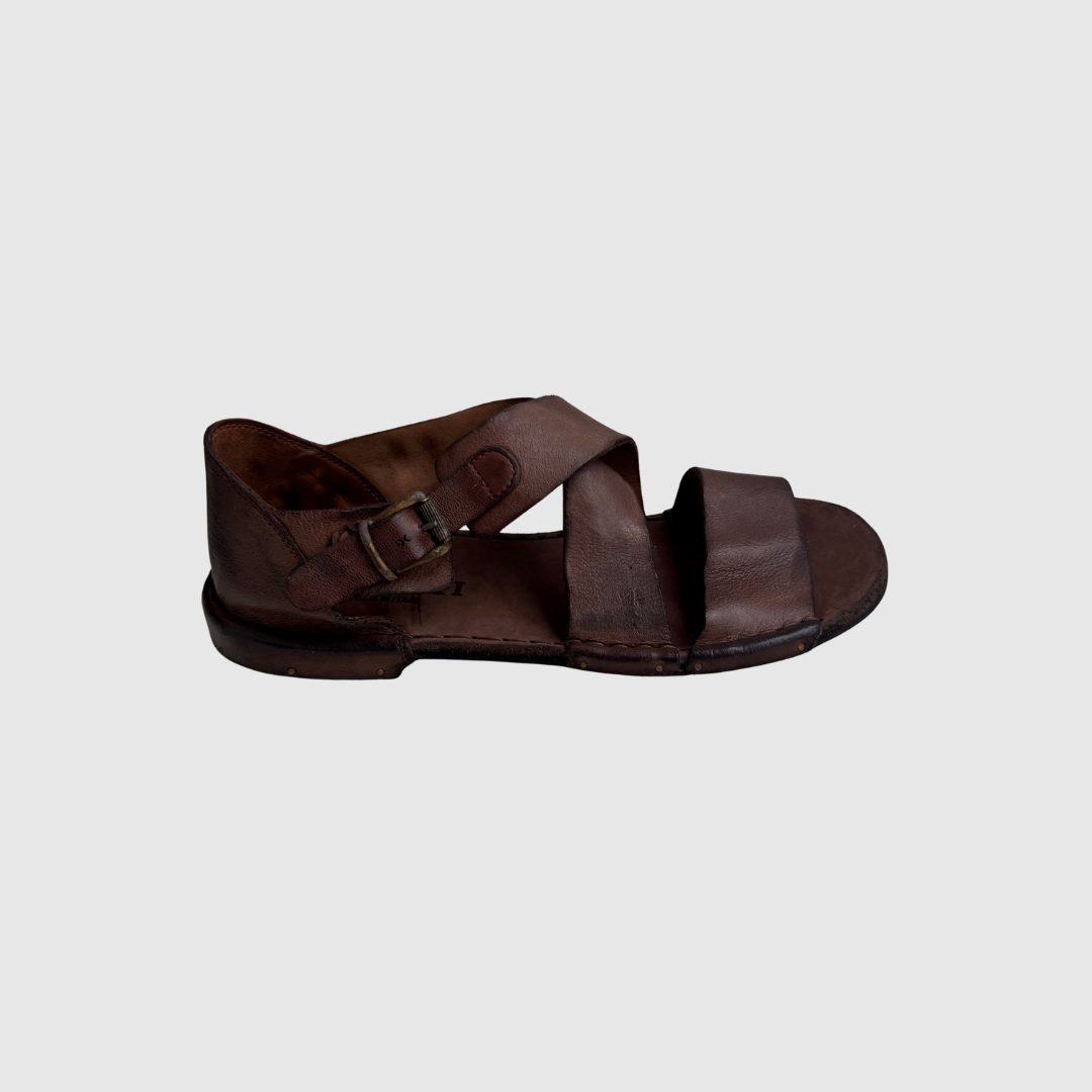Bubetti Lux547 i farven mørkebrun er en eksklusiv og smuk sandal, håndlavet i Italien i den velkendte Bubetti‑kvalitet. Sandalen er fremstillet i vegetabilsk garvet skind, som giver den en naturlig, holdbar og autentisk overflade med et råt, levende udtryk. Skindet gennemgår en særlig vaskeproces, som gør hver sandal helt unik i både struktur og farve.