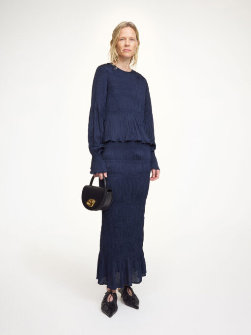 Ilona nederdelen fra By Malene Birger er en elegant og feminin maxinederdel med smock-detaljer og elastisk talje, der sikrer både komfort og stil. Den ankel-lange silhuet og det fuldt forede design gør den ideel til festlige lejligheder, men den kan også styles til hverdag med en strik eller skjorte. Fremstillet i blød viskose med LENZING™ ECOVERO™ fibre – et ansvarligt valg til den moderne garderobe.