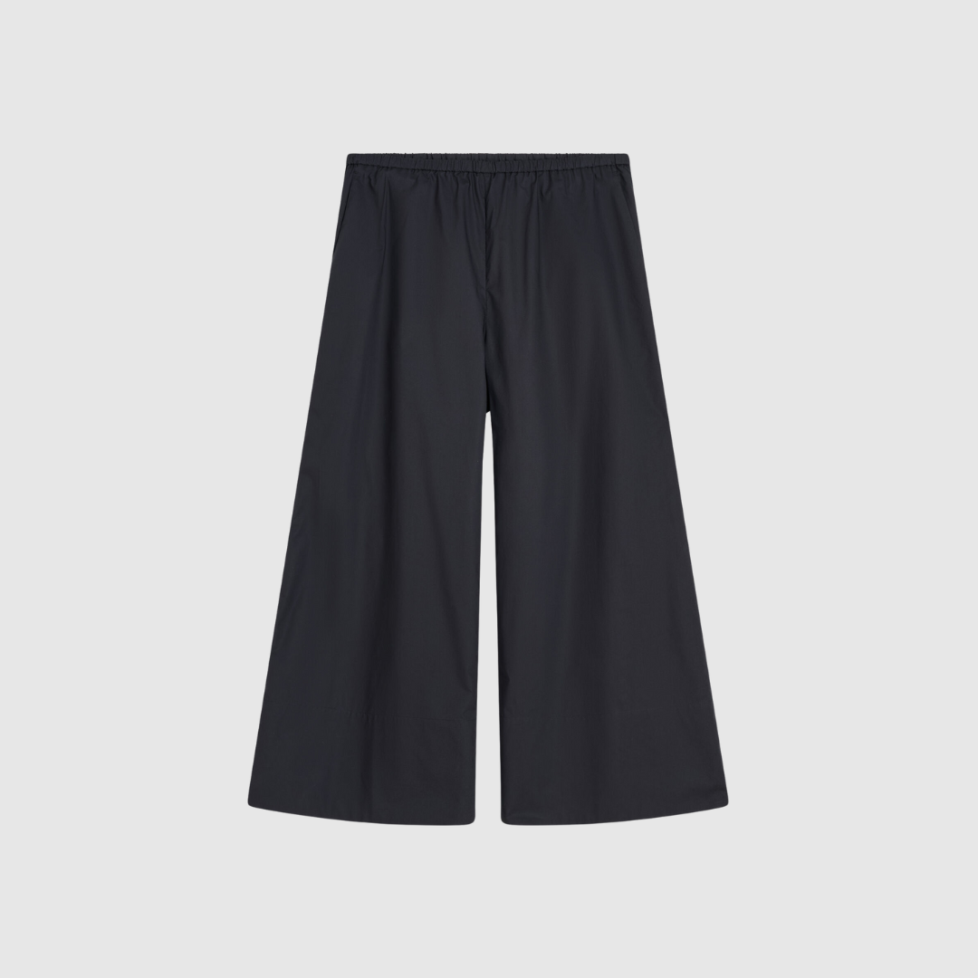 Luisa‑bukserne fra By Malene Birger er et par elegante, luftige og moderne bukser, der kombinerer komfort med skandinavisk minimalisme. De er fremstillet i sprød, økologisk bomuld og designet i en løs, højtaljet pasform med brede, cropped ben, som skaber en afslappet og samtidig sofistikeret silhuet.