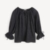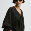 ROSE WEAVE BLUSE er en elegant, let og alsidig bluse, der kombinerer et eklektisk udtryk med maksimal komfort. Blusen har en løs pasform og er designet med en flot krave, dyb V‑udskæring og justerbare bindebånd, som gør det muligt at style den både afslappet og mere festligt.