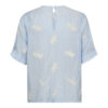 Blusen har korte ærmer og fine broderidetaljer, som tilføjer et delikat, håndværkspræget udtryk. Den lyse blå nuance skaber et friskt og roligt look, der passer perfekt til både hverdagsbrug, kontor og sommerlige anledninger.