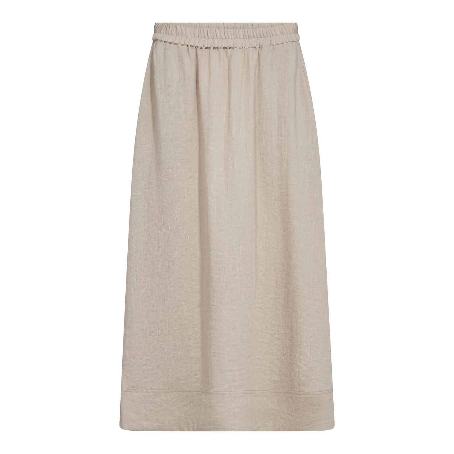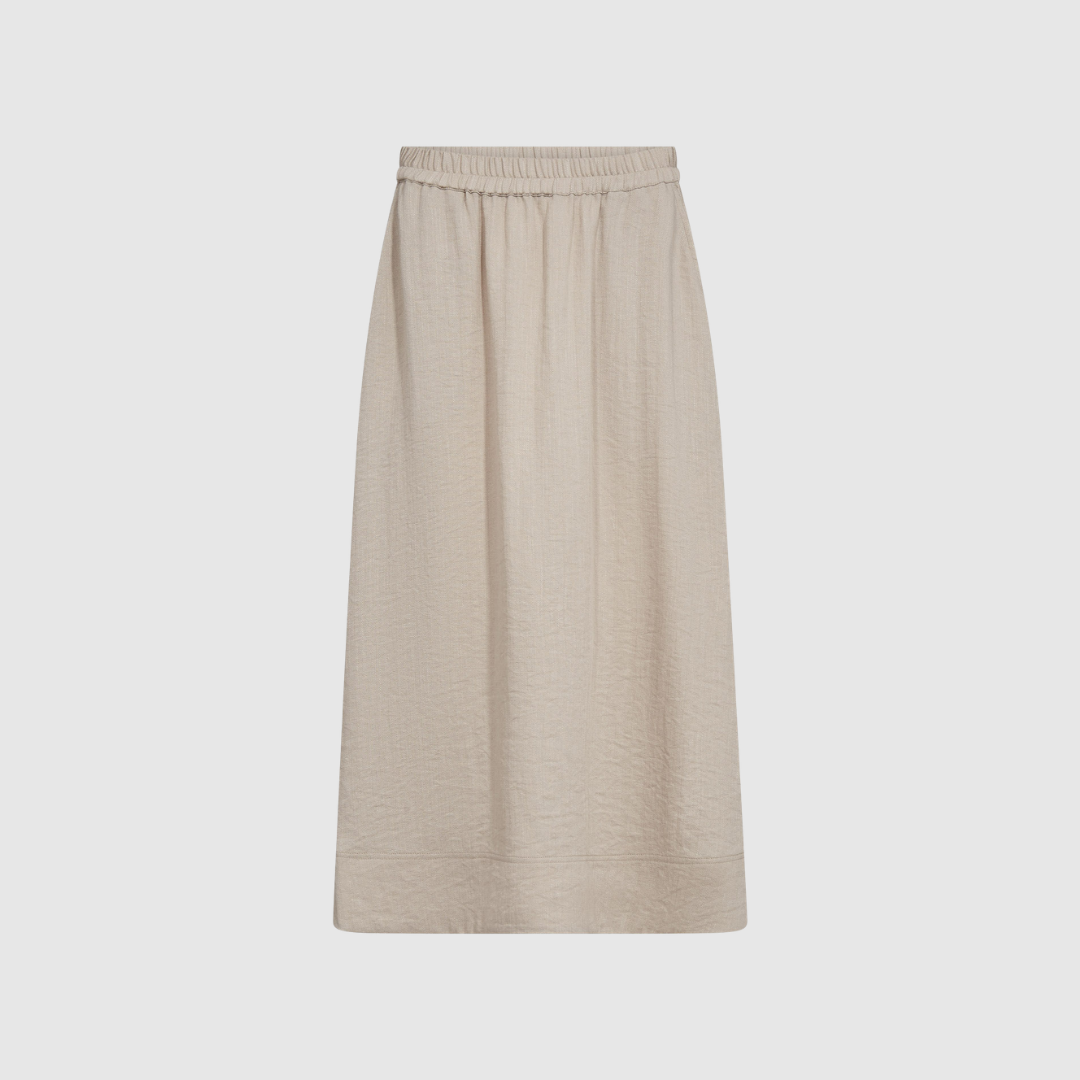 Nederdelen er fremstillet i en let og behagelig kvalitet bestående af 53 % viskose, 27 % polyamid, 14 % lyocell og 6 % hør. Materialeblandingen giver et smukt fald, god åndbarhed og høj komfort hele dagen.