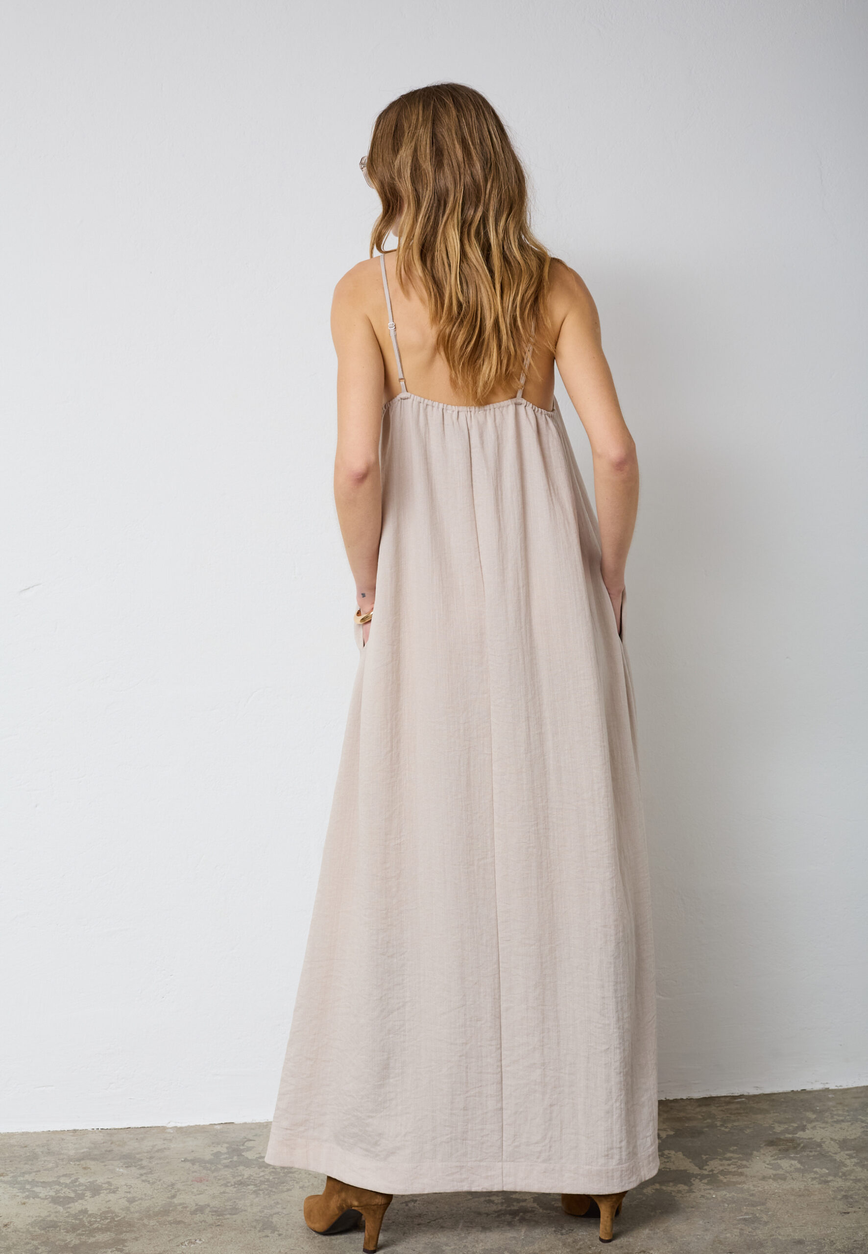 Den rene form gør kjolen nem at style både alene og i lag‑på‑lag looks. Den varme walnut‑farve giver et eksklusivt og roligt udtryk, som kan styles med sandaler, sneakers eller let strik afhængigt af sæson og anledning. EvaCC Strap Dress er også oplagt sammen med accessories for et mere gennemført look.