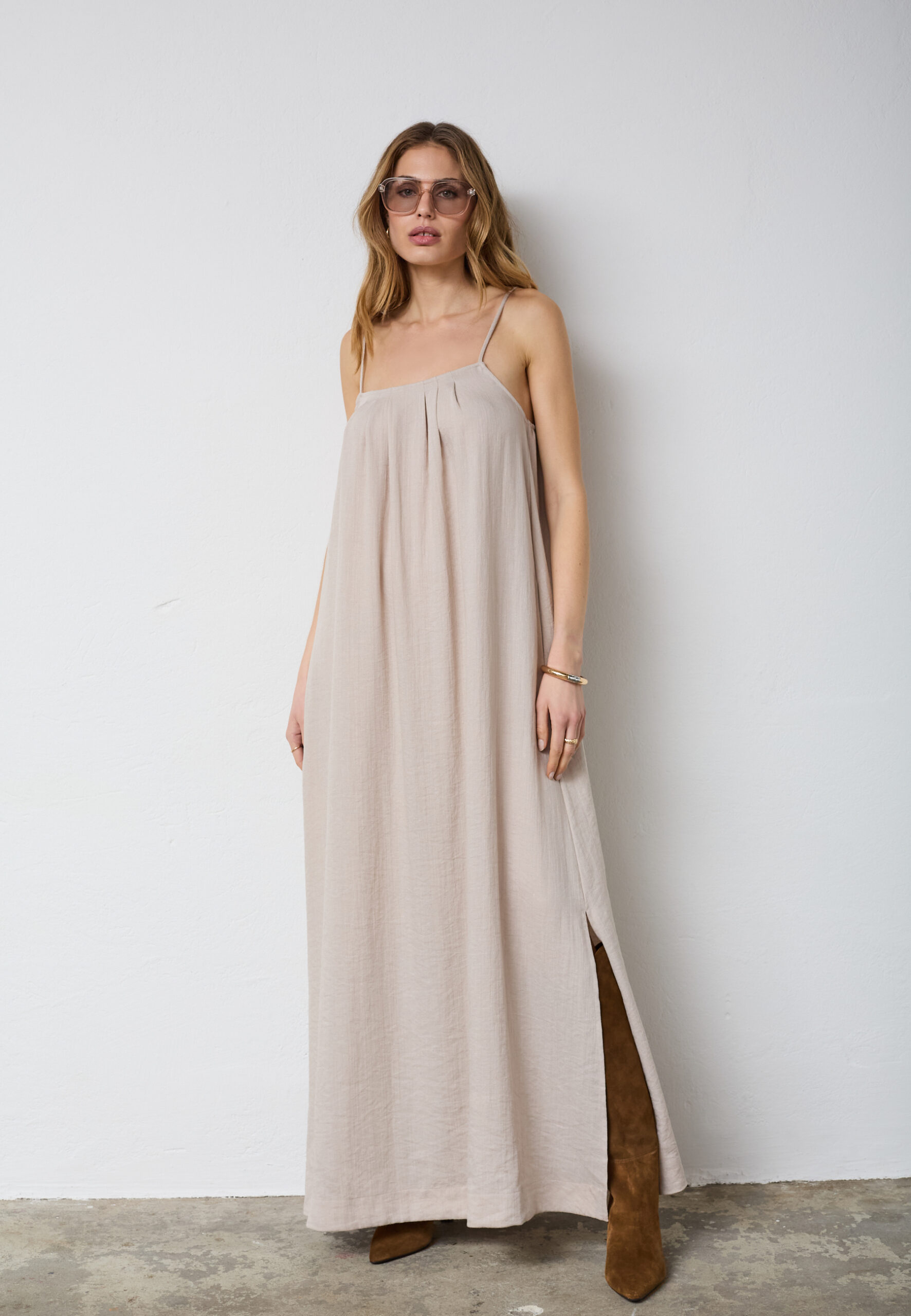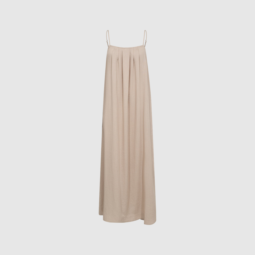 EvaCC Strap Dress er en let og elegant kjole med et feminint og afslappet udtryk. Kjolen er designet med fine stropper og en enkel silhuet, som giver et smukt, flydende fald og høj komfort – perfekt til varme dage og afslappede anledninger.