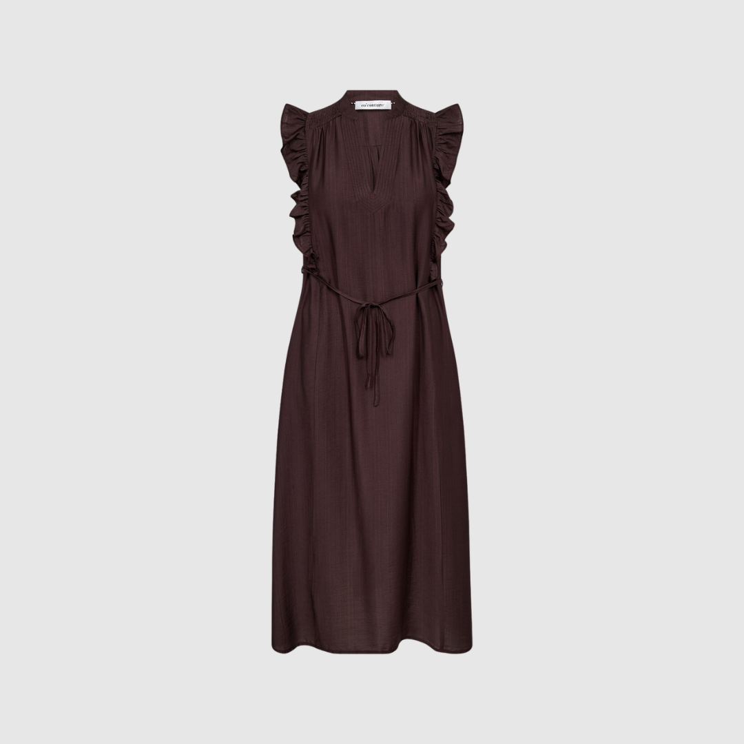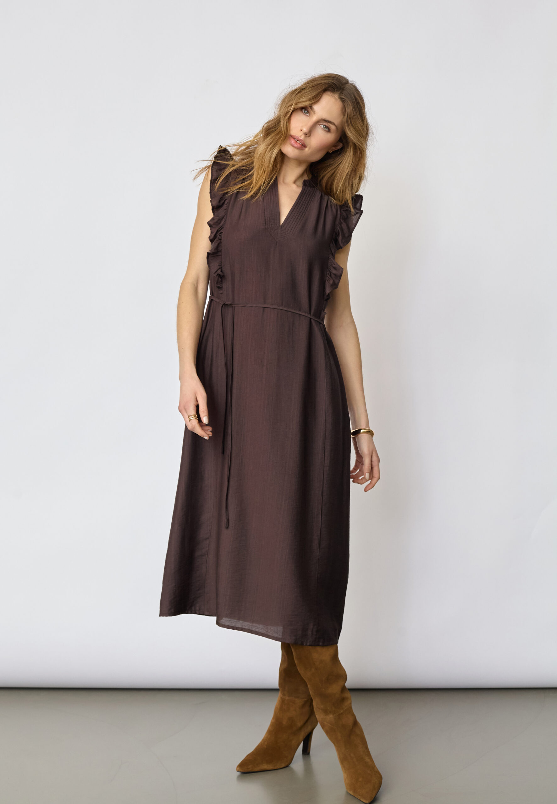 Co’Couture – HeraCC Frill SS V‑Dress – Dark Brown