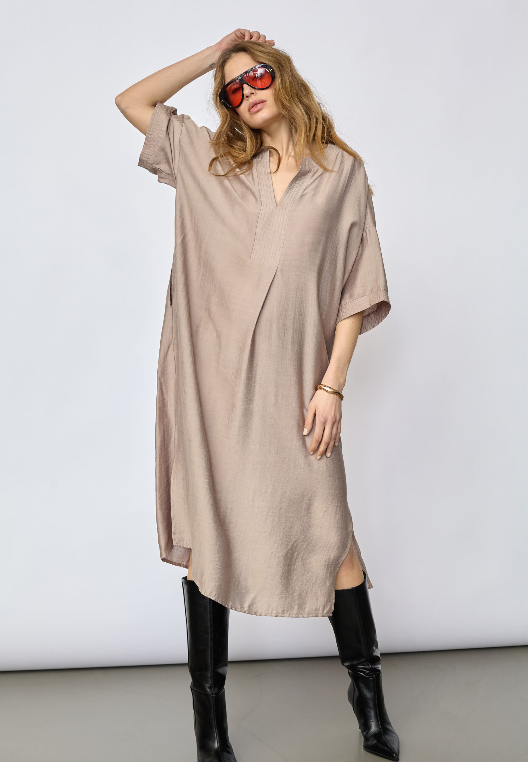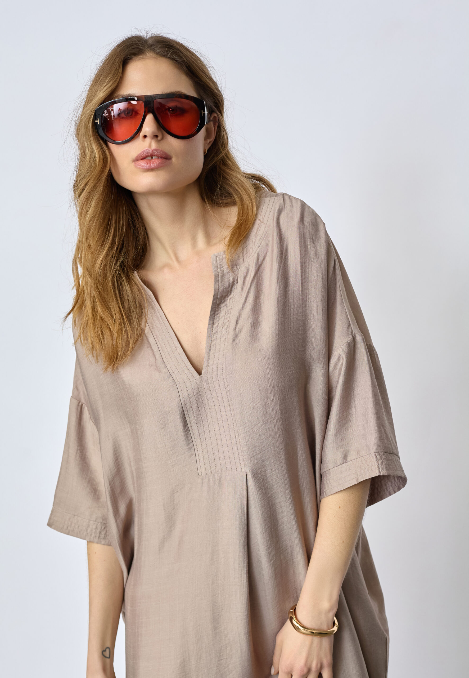 HeraCC Tunic V‑Dress kan bæres alene som kjole eller styles med strømpebukser, støvler eller sandaler afhængigt af årstid og anledning. En alsidig garderobefavorit, der kombinerer komfort og feminin elegance.