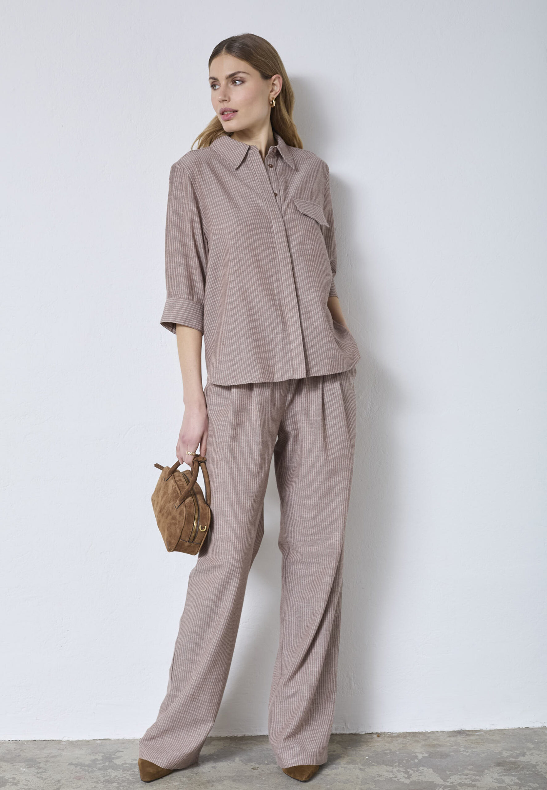 Det diskrete brune stribemønster giver skjorten et tidløst og roligt look, der passer perfekt ind i en nordisk garderobe. Den lette kvalitet falder flot og sikrer høj komfort hele dagen. JihoCC Stripe SS Shirt fungerer både alene og som lag‑på‑lag og kan styles med alt fra jeans og bukser til nederdele.