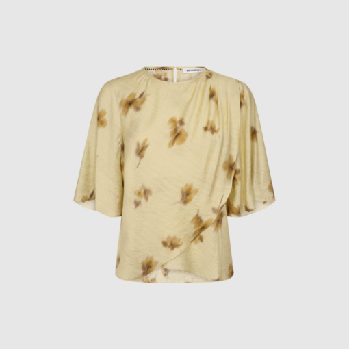 Blusen har korte ærmer og en flatterende silhuet, som gør den nem at style med både skirts, shorts og jeans. Farven Pale Yellow giver modellen et friskt, blødt og sommerligt udtryk, der tilfører varme og lys til enhver garderobe.