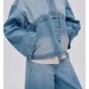 Donela denimjakken er et markant og moderne bud på en klassisk denimjakke. Den er udført i en lys, forvasket denim, som giver et cool og afslappet udtryk. Jakken har et kort og oversized fit, der skaber en flatterende og nutidig silhuet, mens de brede, opsmøgede ærmer og store sidelommer tilføjer karakter og visuel kant.