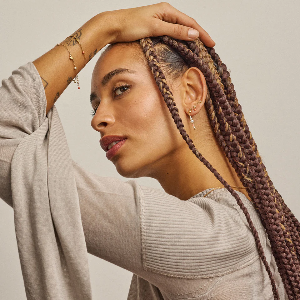 Øreringene er fremstillet i 925 sterling sølv forgyldt med 18 karat guld, og den levende, organiske struktur giver dem et unikt og moderne udtryk. De små studs er perfekte alene for et fint og feminint look – men også ideelle at kombinere med andre hoops og studs for et fuldendt ear‑stack.
