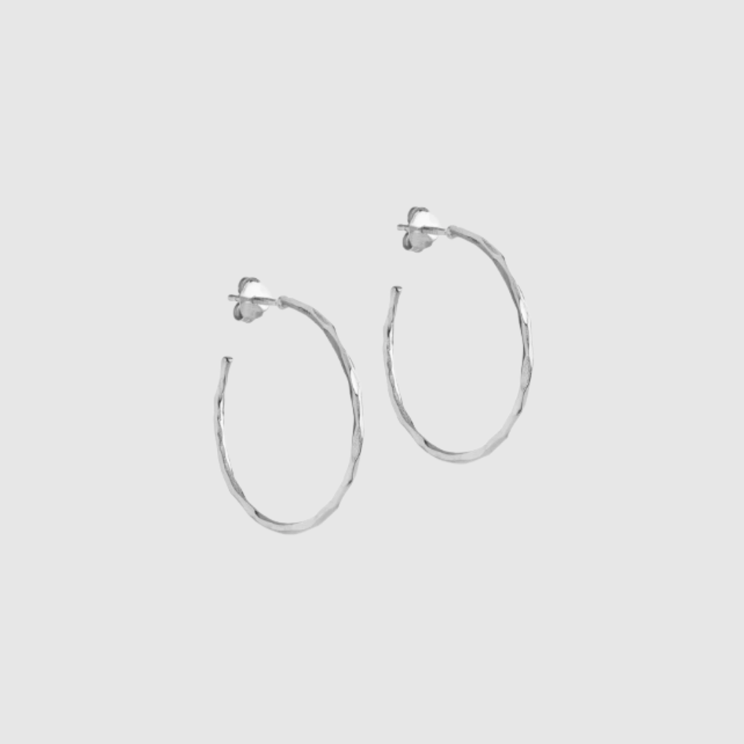 Øreringene er fremstillet i genanvendt sterlingsølv (925), som giver et klassisk sølvlook med høj kvalitet og flot holdbarhed. Designet i Danmark med fokus på ægte materialer, ansvarlighed og tidløst håndværk.