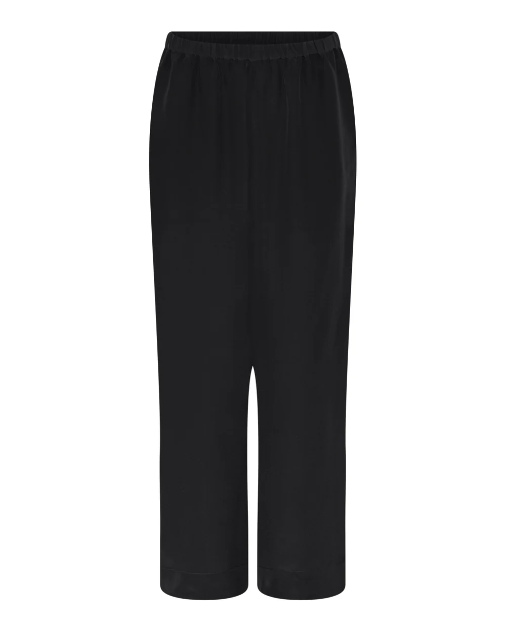Silkekvaliteten skaber en luksuriøs følelse mod huden og gør bukserne perfekte til både hverdag og mere formelle anledninger. Den crepede silkestruktur giver et eksklusivt udtryk, der fungerer fantastisk sammen med både en løs skjorte, en strik eller en matchende silkebluse. Uanset styling tilfører Melbourne-buksen et elegant og roligt look, som er karakteristisk for FRAUs univers af enkle og tidløse basisstyles.