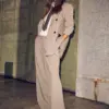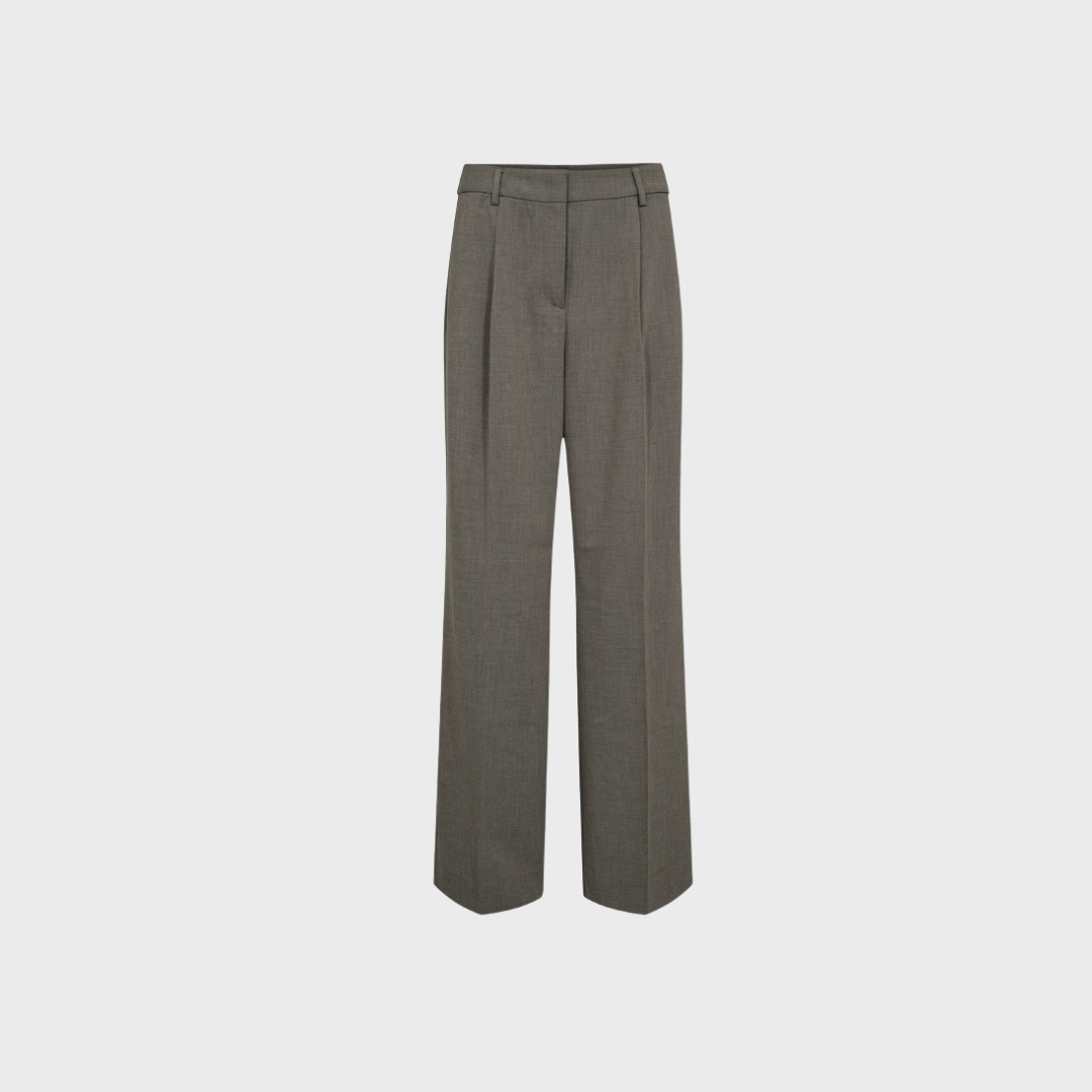Disse elegante bukser fra Haute L’Amitié kombinerer klassisk tailoring med moderne komfort. Nicole Pleat Pant har en flatterende høj talje, pressefolder og en løs, lige benvidde, som giver et sofistikeret og afslappet look. Den melerede beige farve gør dem nemme at style – både til hverdag og mere formelle anledninger.