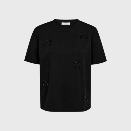 Pearl Bow Tee fra Haute L’Amitié er en elegant og moderne t-shirt med dekorative perle-sløjfer placeret på fronten. Den klassiske sorte farve kombineret med de fine detaljer giver et feminint og sofistikeret udtryk, der kan styles både til hverdag og fest. Perfekt til at skabe et chic look med jeans, nederdel eller under en blazer.