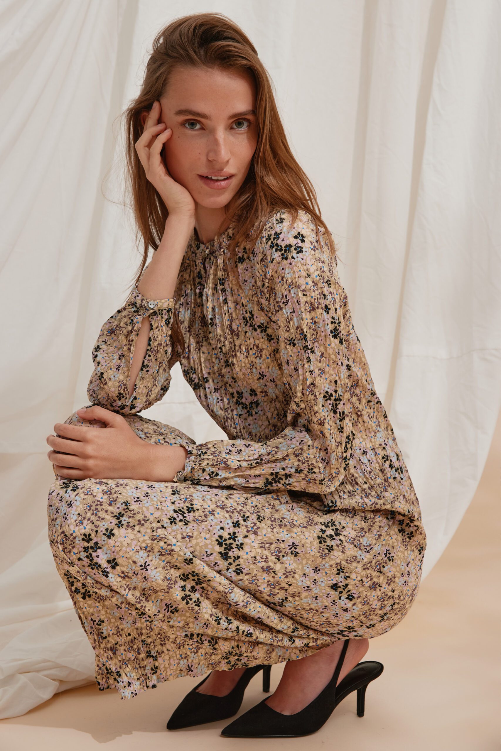 HMHornsea Dress er en ikonisk kjole fra Heartmade, kendt for sit elegante udtryk og sine karakteristiske detaljer. Kjolen har en smuk midi-længde og lange ærmer, og er udført i en eksklusiv silkeblanding med en unik twist‑teknik, der giver designet ekstra dimension og bevægelse. Med knaplukning i halsen og ved manchetterne får kjolen et raffineret finish, mens det glitrende Heartmade-logo bagpå tilføjer en sofistikeret signaturdetalje. Perfekt til både formelle og afslappede lejligheder.