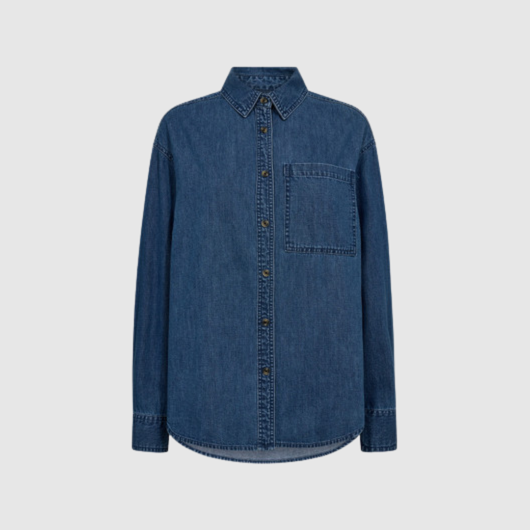 Malika Matti Regular Denim Shirt er en klassisk, alsidig og stilren denimskjorte skabt til den moderne garderobe. Den er designet i en blød og behagelig bomuldsdenim, der giver skjorten et afslappet men eksklusivt udtryk. Med sin regular fit pasform, lige silhuet og dropped shoulders får du en skjorte, der falder flot og naturligt på kroppen uden at virke for stram eller for oversized – den perfekte balance til både hverdags- og kontorlooks.