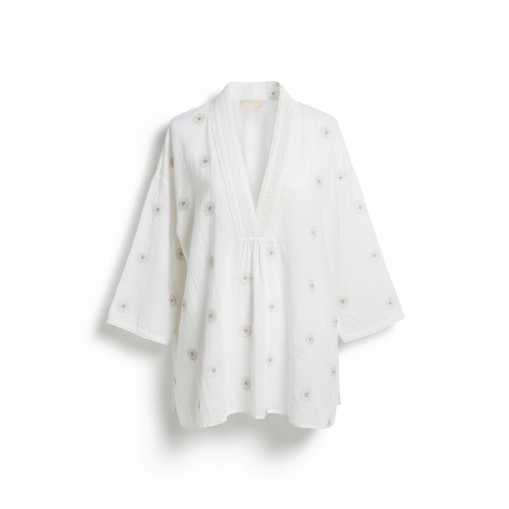 Skjorten er fremstillet i en blød og let kvalitet med en smuk struktur, der falder flot og føles behagelig mod huden. Den klassiske hvide farve giver et rent og friskt udtryk, som passer perfekt ind i basisgarderoben og nemt kan kombineres med både lyse og mørke nuancer. Med sin onesize‑pasform skaber Ida Shirt et afslappet og moderne look med høj komfort.