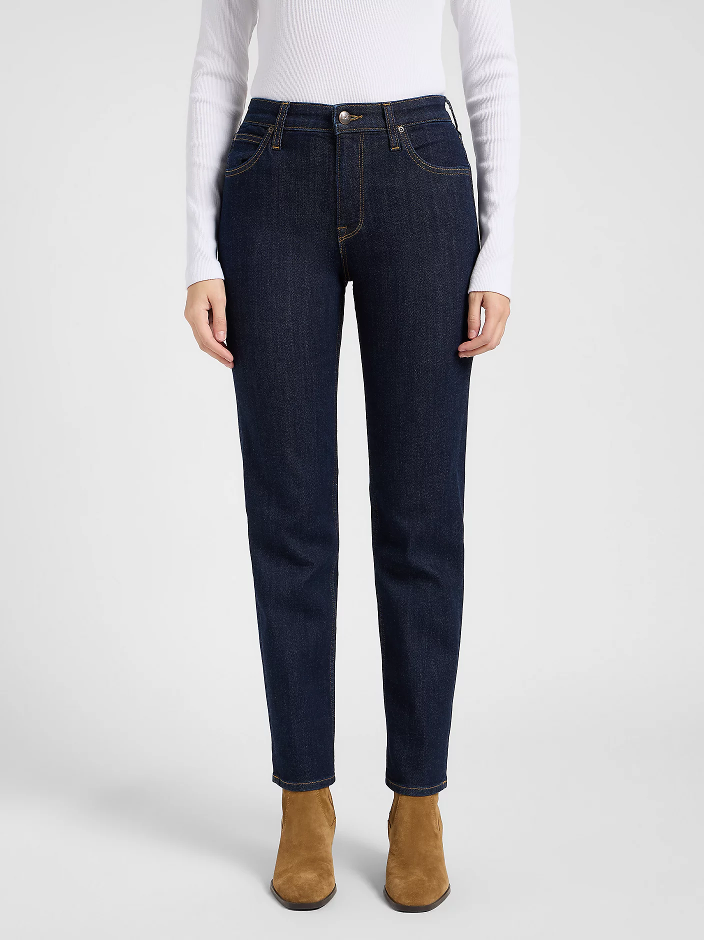 Carol Regular Jean fra Lee er klassiske jeans i mørk indigo med et moderne og tidløst udtryk. De er designet med høj talje, smal pasform over hofterne og lige ben, som giver et flatterende fit og et elegant look. Jeansene er fremstillet i letvægtsdenim med stræk, der sikrer både komfort og bevægelsesfrihed. Et par alsidige jeans, der kan styles til både hverdagsbrug og mere sofistikerede lejligheder.