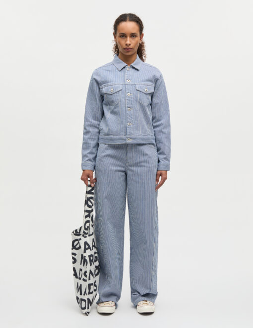 HICKORY PUNK CHRISTEL JEANS er et par moderne, stribede barrel-leg jeans, der kombinerer Mads Nørgaards ikoniske hverdagsæstetik med et cool, grafisk denimlook. I farven Bright Cobalt får jeansene et friskt og markant udtryk, som både er tidløst og trendy.