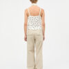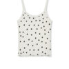 Designet har smalle stropper og en tætsiddende pasform, der smyger sig elegant om kroppen. De fine bølgede kanter ved udskæring og bund tilfører et feminint og afslappet touch, som gør toppen perfekt både alene og som lag‑på‑lag under skjorter, strik eller blazere. Det prikkede mønster giver et legende twist til den ellers klassiske og minimalistiske silhuet.