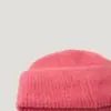 Tosca Anju Hat er en blød og ribstrikket hue fra Mads Nørgaard, her i en frisk fuchsia pink farve. Den brede dobbelt-ombuk og påsyede logolabel giver huen et moderne og afslappet udtryk – perfekt til både hverdag og kolde dage med stil.