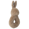 Den lille kanin har et roligt, naturligt udtryk, syet i bløde materialer, der er behagelige for små hænder at gribe om. Indeni gemmer der sig en fin, subtil raslelyd, som hjælper barnet med at opdage årsag‑virkning og udvikle sin høresans uden at overstimulere. Det er en lyd, der er designet til at være blid – en tryg, dæmpet lyd, der kan bruges både i vågen og rolig stund.
