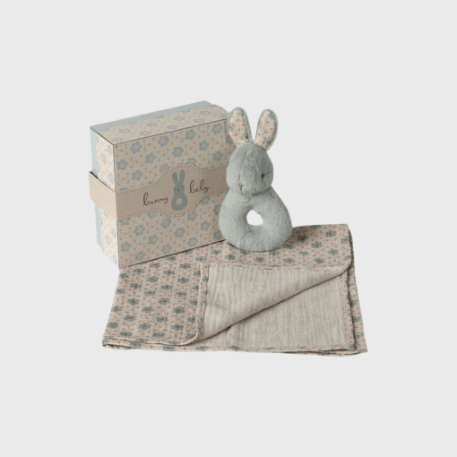 En perfekt gaveidé til de mindste! Dette søde ranglesæt fra Maileg indeholder en blød stofble og en lille hare med indbygget rangle, der laver en blid lyd ved bevægelse. Sættet kommer i en smuk gaveæske og er ideelt som barselsgave, dåbsgave eller en kærlig overraskelse til nybagte forældre.
