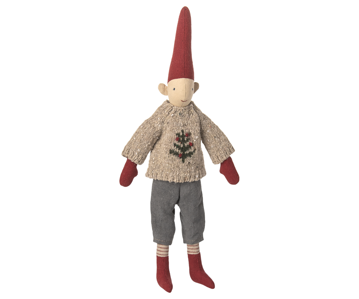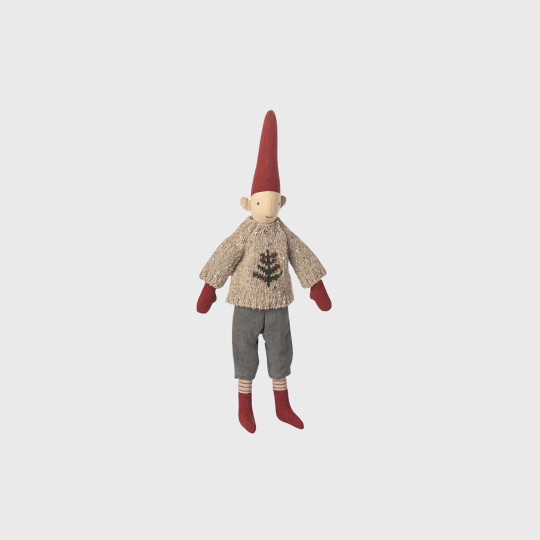 Denne Pixy-nissedreng i størrelse 2 er en del af Mailegs elskede juleunivers. Han er iført en fin, strikket sweater, der giver ham et hyggeligt og klassisk udtryk. Med sin højde på ca. 31 cm er han perfekt til at pynte på en hylde, i vindueskarmen eller som en del af en stemningsfuld juleopstilling. En tidløs julefigur med personlighed og charme.