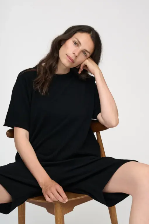 AMBER KNIT MERINO er en klassisk og tidløs strik‑T-shirt i blød, luksuriøs merinould. Den elegante runde halsudskæring og de fine ribdetaljer ved kant, hals og ærmer giver et raffineret og velklædt udtryk.