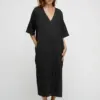 Det fine broderie anglaise giver kjolen struktur og et eksklusivt look, mens de praktiske sidelommer understreger den funktionelle og afslappede tilgang, som kendetegner moshi moshi mind. Farven Moonless Night – en klassisk, dyb sort – gør kjolen yderst anvendelig og let at style både til hverdag, ferie og mere pæne anledninger.
